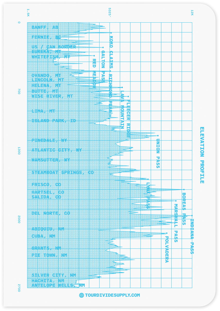 The Ride Journal is a waterproof, pocket-sized notebook, the same size as a passport, a nod to a route that crosses borders. It's made to disappear into a jersey pocket or handlebar bag, ready for sketching maps, tracking daily miles, noting resupply conditions, or capturing what it felt like in the moment.